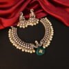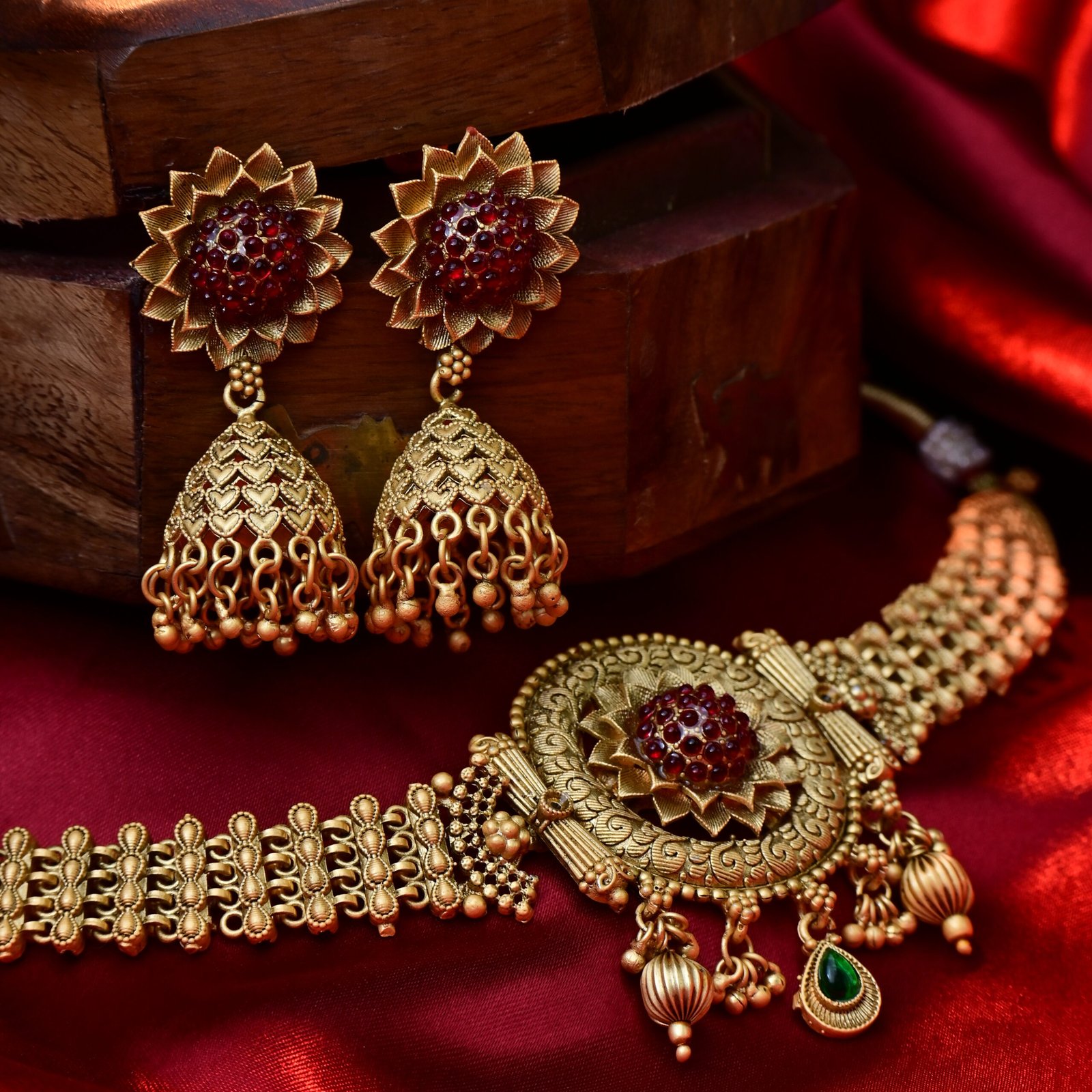 Antique Gold-Plated Temple Choker Necklace Set with Jhumka Earrings